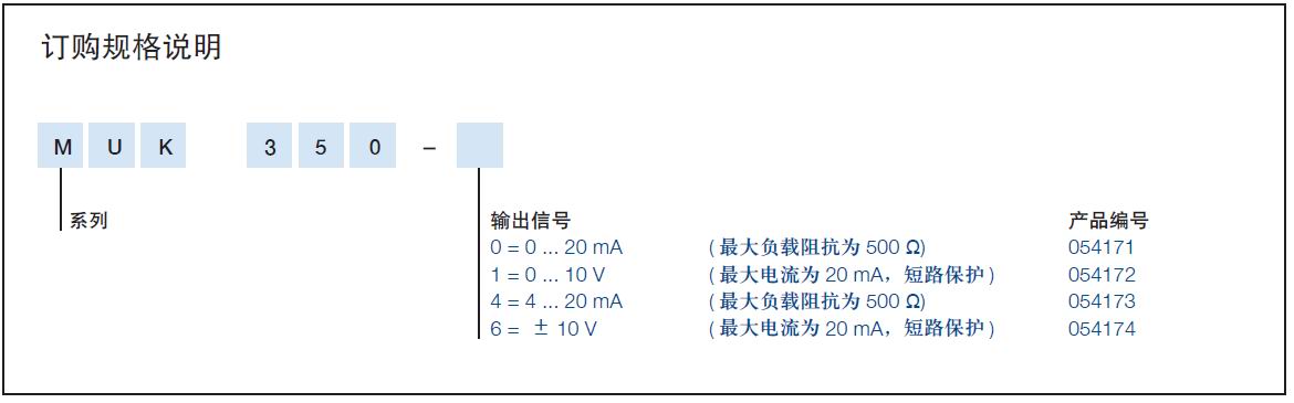 信號模塊MUK350,德國原裝產品,壓鑄鋁合金屏蔽外殼,保證輸出信號穩定不受干擾,防水接頭以及密封膠圈確保整體防護等級高至IP65,內部采用高精度隔離和信號模塊 ,精度高,穩定性好 ,輸出訊號上下限可微調,輸出訊號可選擇0-10V,4-20mA,可訂購特殊輸出信號。
