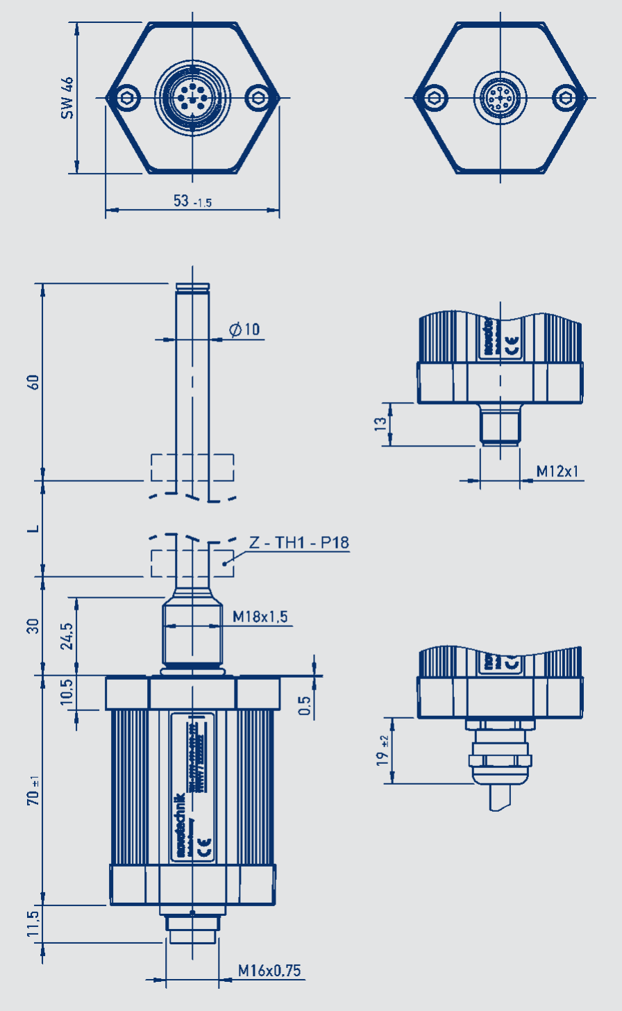 TH1 系列直線位移傳感器 非接觸式磁滯伸縮原理,NOVOSTRICTIVE 測量技術(shù) 無機(jī)械磨損,絕對值輸出,工作量程可達(dá) 4250 mm 應(yīng)用NOVOSTRICTIVE? 非 接觸式磁致伸縮測量技術(shù)的傳 感器可在控制、定位和測量系 統(tǒng)中對位置和長度進(jìn)行直接、 精確、絕對地測量。 測量過程通過使用移動 O 型磁環(huán)實現(xiàn)。O 型磁環(huán)呈懸浮 移動狀態(tài),非接觸式設(shè)計使安 裝更加簡便,無磨損操作意味 著無限的機(jī)械壽命和磁環(huán)的無 限制往返速度,測量量程最高 可達(dá) 4250 mm。 由于采用先進(jìn)的測量原 理、完美的設(shè)計和精選的原材 料,使得傳感器的溫度系數(shù)對 數(shù)據(jù)測量的影響降到最低。與 測量技術(shù)相結(jié)合考慮的機(jī)械強(qiáng) 度意味著系統(tǒng)具有很高的抗沖 擊和抗振動性能。 傳感器棒形設(shè)計允許傳感 器安裝在帶有壓力的液壓缸和 氣壓缸內(nèi)。非接觸式 O 型磁塊 可使傳感器安裝更為簡單。 傳感器中成熟的 ASIC 技 術(shù)可提供標(biāo)準(zhǔn)的絕對輸出信 號。 除提供標(biāo)準(zhǔn)的模擬量電壓 和電流信號外,還提供諸如 同 步 串 行 接 口 (24、25 或 26 位 ) 以及啟動 / 停止脈沖這些 常用接口,還具有數(shù)據(jù)傳輸 監(jiān)控功能的高性能動態(tài)串行 “DyMoS?”接口。 特點: ? 傳感器和測棒高度集成 ? 非接觸式磁致伸縮原理,NOVOSTRICTIVE? 測量技術(shù) ? 非接觸式位置測量 ? 無機(jī)械磨損,無限的機(jī)械壽命 ? 標(biāo)準(zhǔn)電流信號或電壓信號輸出 ? 工作量程可人工設(shè)置 ? 線性優(yōu)異,最高可達(dá) 50 μm ? 無論工作量程大小,分辨率最高可達(dá) 0.001 mm ? 溫度系數(shù)低,<30 ppm/K ? 抗沖擊或振動的性能優(yōu)異 ? 可選輸出電纜或插頭 ? 防護(hù)等級 IP67 / IP68 ? 工作壓力最高可達(dá) 350 bar ? 具體請同時參考產(chǎn)品使用手冊和機(jī)械加工圖紙
