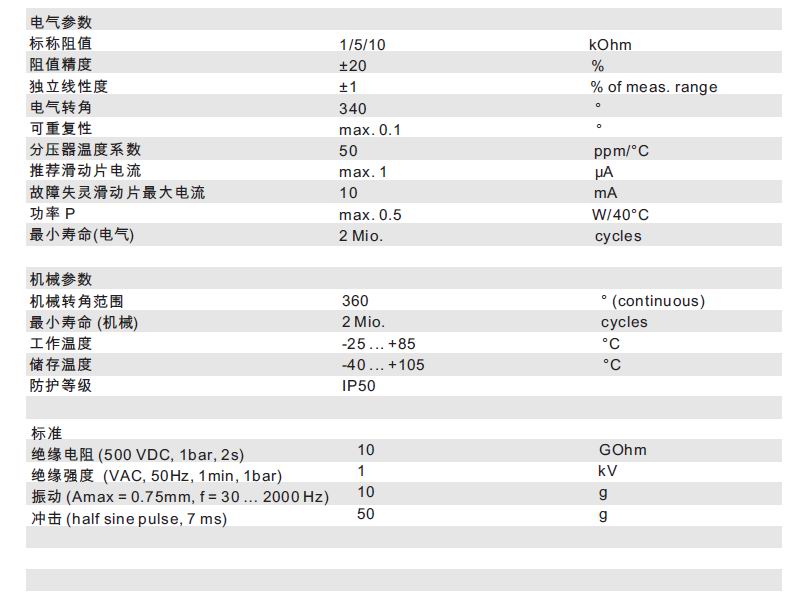 瑞士CONTELEC角度傳感器 多種規格:0-150°.....354°;使用壽命長:100000000次操作; 空心軸角度傳感器 多圈角度傳感器6...100圈; WAL300/305空心軸角度傳感器,導電塑料電位器技術,壽命2百萬次;工作量程0-340°;重復精度0.3%;線性度±2%。 產品型號: WAL300 5KO 1A WAL305 5KO 1A。
