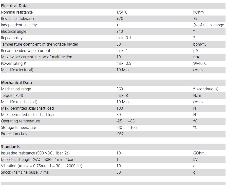 PL360系列 角度位移傳感器,導電塑料電位器技術,壽命1千萬次工作量程0-340° ;分辨率0.1° ,重復精度0.02% ;線性度±1%。