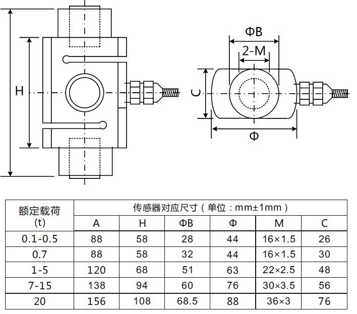 拉壓力傳感器:可測雙向拉壓力,1.5倍過載; 最高0.02%的線性精度;多種信號輸出:0-10V,4-20mA。 柱式拉壓力傳感器THS ●可拉壓受力 ●安裝使用方便,互換性好 ●具有過載保護功能 ●可選量程:100kg~20t。 ●適用于配料秤、吊鉤秤、包裝秤等
