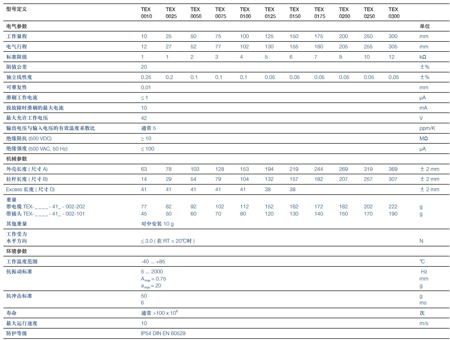 其它類型的傳感器,如帶復(fù)位彈簧或球眼安裝接頭等參見其他TEX產(chǎn)品資料。