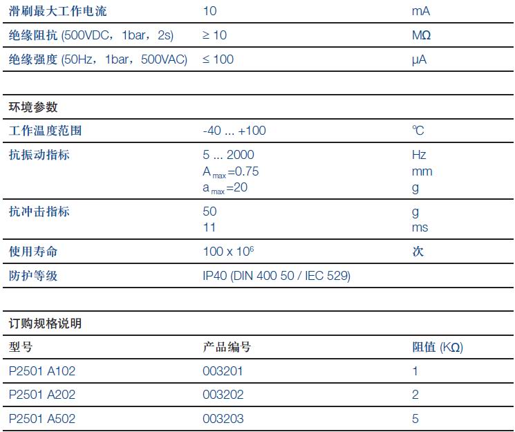 P2500系列角度傳感器,標準型,電位計原理。電阻式精密電位器。適合測量,控制和儀器化儀表應用。P2500的顯著特點包括:全金屬外殼,球型軸承,導電塑料基板和彈性阻尼滑刷。由于其可靠性高,壽命長,線性優異,分辨率高,可高速運動和耐腐材質,使傳統的電位計原理傳感器技術達到前所未有的應有水平。客戶可提供特殊量程和軸尺寸等特殊規格傳感器定制。