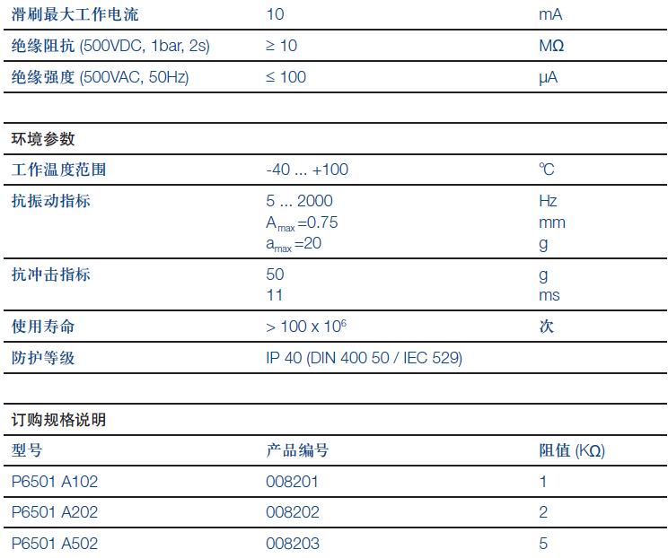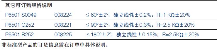 P6501系列角度傳感器,標(biāo)準(zhǔn)型,電位計(jì)原理,電阻式精密電位器,適合測(cè)量、控制和儀器化儀表應(yīng)用,P6501顯著特點(diǎn)包括:全金屬外殼、球型軸承、導(dǎo)電塑料、基板和彈性阻尼滑刷。作一種高精密角度位移傳感器,它既適合各種模擬量的輸出的應(yīng)用,比如,如果他同時(shí)和A/D變換器配合使用,則構(gòu)成性價(jià)比極高的數(shù)字型絕對(duì)值編碼器,可用于精密定位/位置檢測(cè)等。 特點(diǎn):使用壽命長(zhǎng),100*106次運(yùn)動(dòng) 線性優(yōu)異,±0.05% 高分辨率,優(yōu)于0.007° 允許最高轉(zhuǎn)速100000轉(zhuǎn)/分鐘 無(wú)限制連續(xù)旋轉(zhuǎn)。
