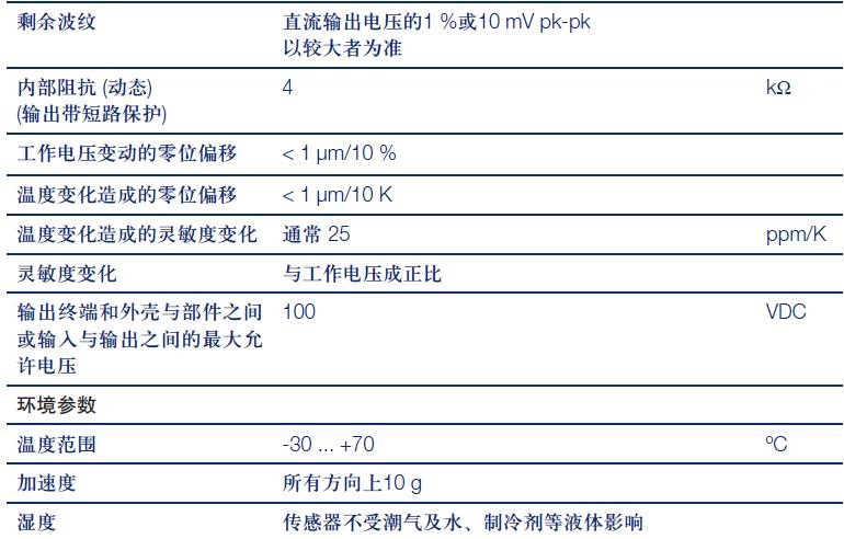 F200g系列傳感器直線位移傳感器,F(xiàn)200型是一種電子位移傳感器,它可通過一種帶可移動鐵芯的差動變壓器把較小的直線位移轉(zhuǎn)換成電模擬信號。鐵芯安裝在推桿上,推桿由內(nèi)置彈簧壓緊靠住被測物體或與被測物體緊密連接。傳感器由直流電壓供電。高度集成的內(nèi)置電源模塊為差動變壓器提供穩(wěn)定交流電壓。鐵芯位移產(chǎn)生相應(yīng)的直流輸出電壓,位移的變化就通過電壓的變化計算得出。電氣零位位于推桿有效量程的中間。 特點(diǎn): ? 線性優(yōu)異,標(biāo)準(zhǔn)值±0.1% ... ±0.3% ? 帶EEM 33-70接頭時,防護(hù)等級IP 67 ? 接反電壓保護(hù) ? 內(nèi)置集成電路 ? 直流電源,直流輸出 ? 接近無限分辨率 ? 良好的熱穩(wěn)定性