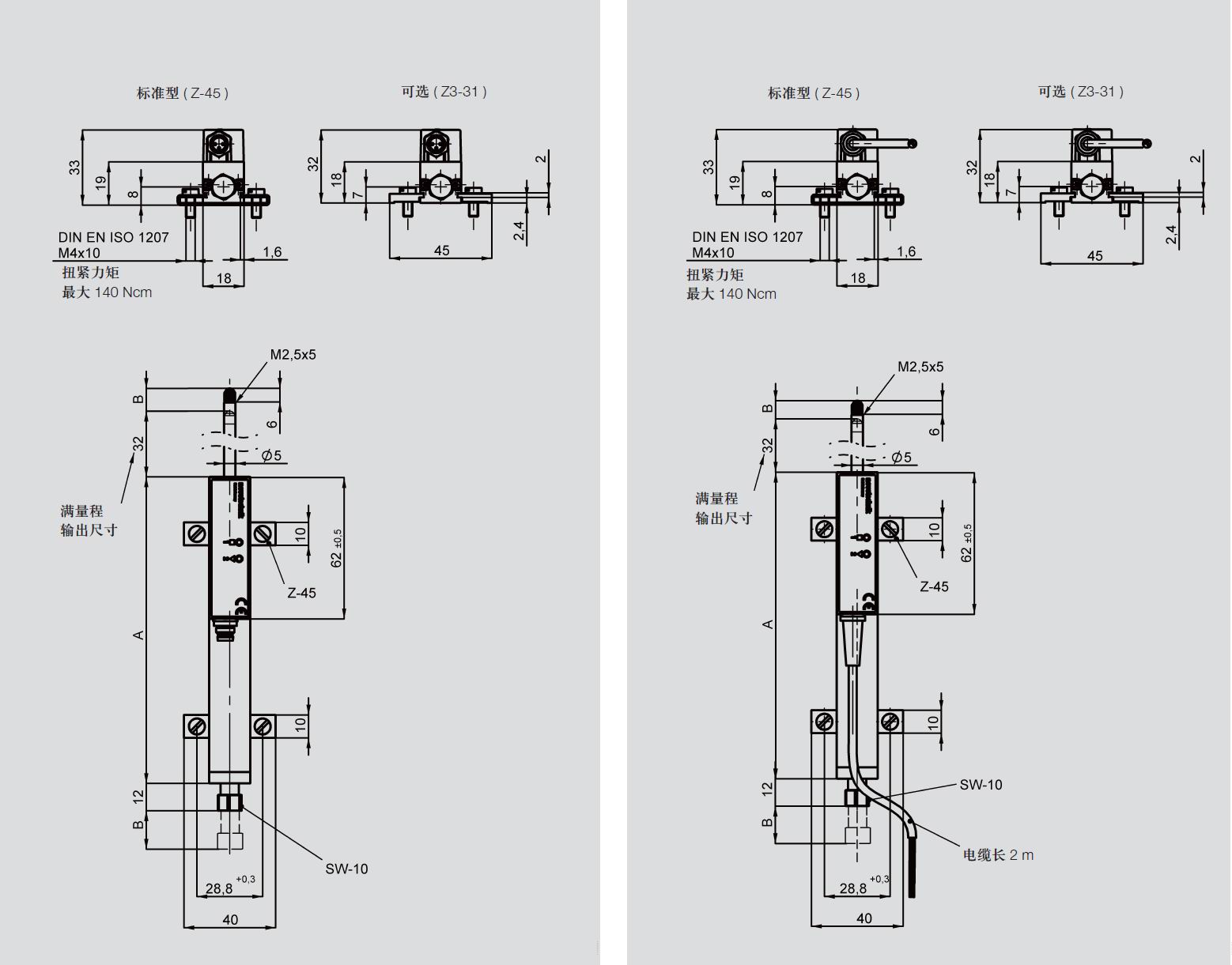 電氣連接:3針M8x1圓接頭,帶屏蔽;3芯PVC屏蔽電纜,3 x 0.14mm2,長2米;