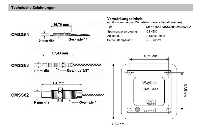 電渦流位移傳感器CMSS,量程:0-0.254mm...7.62mm;線性度:+/-50.8um,分辨率:200mv/25.4um;響應頻率:10KHZ。輸出信號:模擬量。